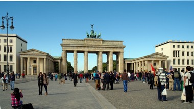 Opuszczając okolice Reichstagu udajemy się do najbardziej rozpoznawalnego miejsca w Berlinie, Bramy Brandenburskiej. Jest jednym z symboli ponownego zjednoczenia miasta po zburzeniu muru berlińskiego. Brama i łuk triumfalny wybudowane w 1791 roku. Budowana po wojnie siedmioletniej, w czasach umacniania Prus, podczas gdy w Polsce trwał Sejm Czteroletni, w roku rewolucji francuskiej została wzbogacona kwadrygą, którą powoziła naga wówczas Wiktoria( dzisiaj już nie ? (: ), bogini zwycięstwa uwieńczona dębowymi liśćmi. Na biało pomalowana budowla nazwana została wtedy Bramą Pokoju.