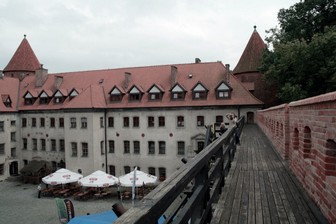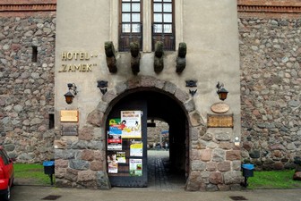 Podziemia, dziś zaadoptowane na stylową dyskotekę, w XV w. były miejscem każni. Komtur więził w nich i torturował przeciwników zakonu, z których wielu zmarło głodową śmiercią. Nic dziwnego, iż Bóg skazał okrótnego Krzyżaka na wieczne potępienie. Teraz w księżycowe noce, odziany w zbrukany krwią płaszcz, błąka się po gankach strażniczych.Z zamku udajemy się do Galerii „Wieża”, czworobocznej, gotyckiej wieży, nakrytej namiotowym Chełmem, z maleńkimi strzelnicami i z zegarem. Ta pozostałość średniowiecznego kościoła zniszczonego w 1945 roku, służy za galerię sztuki użytkowej, ludowej i nowoczesnej. Wśród odkrytych fundamentów dawnego kościoła naprzeciw wieży jest pomnik Jana Pawła II.