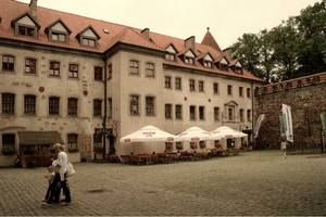 W 1912roku Polacy stanowili w powiecie bytowskim ok. 15% ludności i Traktat Wersalski pozostawił miasto w granicach Niemiec. W 1945roku zniszczony w 70 % Bytów włączony do Polski; niemiecką ludność miasta wysiedlono. Po 1947 roku Bytów oraz okolice został zasiedlony osadnikami z wschodniej i centralnej Polski, m.in. w ramach „ Akcji Wisła”. Zwiedzanie zaczynamy od zamku, pokrzyżackiej twierdzy, jednej z najlepiej zachowanej w kraju.Zamek wzniesiony w 1390-1405 roku jako gotycka twierdza.Jego naroża chronione są przez trzy owalne baszty i jedną czworoboczną. W gotyckim skrzydle północnym, dawnym Domu Zakonnym mieści się Muzeum Zachodnio-Kaszubskie. Na parterze zgromadzono narzędzia rolnicze, rybackie isprzęty gospodarstwa domowego. W sali myśliwskiej na pierwszym piętrze znajdują się ozdoby myśliwskie ze srebra i leśnych trofeów, w innych salach kapliczki, obrazy, portrety a takżę goszczącą wystawę regionalnych ubiorów.