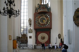 lat 1464-1470, dzieło Duringera z Torunia. Dwunastometrowy zegar pokazuje godziny, fazy księżyca i znaki zodiaku.