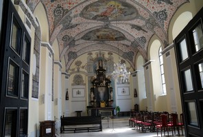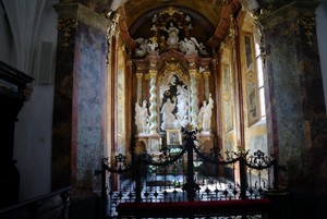 Za pierwszym z bocznych ołtarzy (ołtarz Wszystkich Świętych) znajduje się Kaplica św. Jana Nepomucena zwana też Kaplicą Chrzcielną (. Została dobudowana do nawy północnej w latach 1610-1612. Natomiast jej rokokowy wystrój pochodzi z 1745 roku. W głównym polu ołtarza znajduje się obramowana skręconymi kolumnami (i rzeźbami świętych Floriana i Wacława) płaskorzeźba z białego stiuku przedstawiająca św. Jana Nepomucena klęczącego przed Matką Boską z Dzieciątkiem.