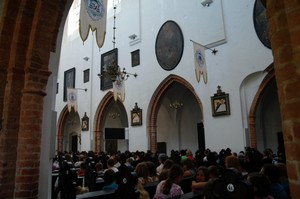 Na prawej wieży umieszczono tablicę upamiętniającą nadanie przez papieża Pawła VI w 1976 roku tytułu Bazyliki Mniejszej.