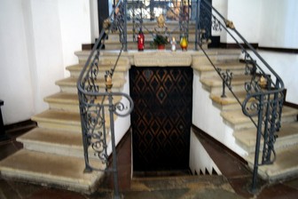 Obok płyty przykrywającej kryptę stoi współczesny ołtarz pełniący rolę głównego ołtarza katedry.