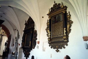 Starsze malowidła, naścienne, (wykonane w latach 1583-1587 z inicjatywy opata Kacpra Geszkaua) przykryte są tablicowymi obrazami autorstwa Hermanna Hahna, który na nowo opracował portrety po 1613 roku.