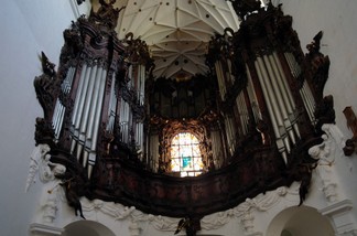 Do wnętrza katedry wchodzimy przez portal, przez rokokową obudowę kruchty (z 2 połowy XVIII wieku), pod balkonem chóru, na którym znajdują sie organy..