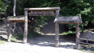 Wędrówkę po Skamieniałym Mieście rozpoczynamy od parkingu przy trasie Tarnów-Krynica, Tarnów-Konieczna przechodząc przez ozdobną bramę symbolizującą wejście do dawnego grodu. Po jego prawej stronie znajduje się źródło, historycznie zwane, „Dobra Woda”. Legenda mówi, że dobroczynne właściwości zawartych w niej składników leczą chore oczy.