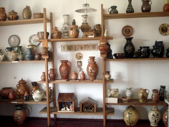 Garncarstwo- jedna z najstarszych dziedzin rzemiosła ludowego Kaszub. Jego wytwory ceramika kaszubska posiada wielowiekowe tradycje. Na ekspozycji przedstawiono gotowe już wytwory ceramiczne w postaci kafli piecowych, wazonów i wyrobów ceramicznych z warsztatu znanych na Kaszubach rodzin Meissnerów, Neclów i Kaźmierczaków. Prezentowane na wystawie wytwory ceramiki kaszubskiej charakteryzują się specyficznymi motywami w postaci gwiazdy kaszubskiej, rybiej łuski względnie tulipana, uzupełniane następnie liniami falistymi lub kropkami.