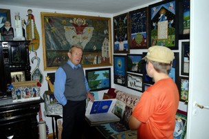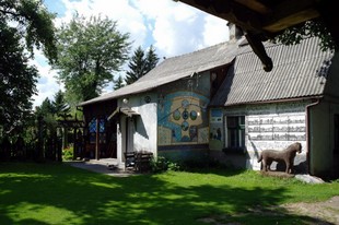 W sąsiedztwie Chaty Kaszubskiej znajdują się zabudowania twórcy ludowego pana Józefa Chełmowskiego. Pan Józef, zwany „Kaszubskim Leonardo da Vinci” jest człowiekiem otwartym na ludzi i świat. Urodził się 26 lutego 1934 w miejscowości Brusy Jaglie. Tam, w malowniczym obejściu pełnym własnoręcznie wykonanych rzeźb, mieszka do dzisiaj. Kaszuba z dziada pradziada. Artysta ludowy o wielu zainteresowaniach: rzeźbi, maluje, pisze książki ….. Posiada cenną kolekcję rękodzieła ludowego, w domu, w którym urządził stałą wystawę w formie muzeum. Otwarty na ludzi, chętnie zaprasza do obejrzenia swoich prac, ciekawie gawędząc o tradycji i historii. Można to opisywać, ale myślę, że trzeba tam być, zobaczyć, posłuchać i wymienić poglądy. Z jego pracami spotkamy się również w Muzeum Zachodnio-Kaszubskim w Bytowie.