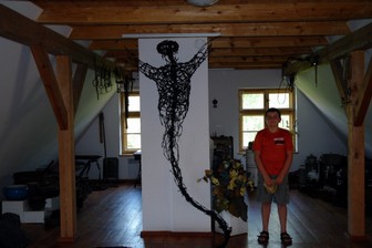 Z Leśna jedziemy zobaczyć chatę kaszubską w Brusach Jagliach. Są to chaty, które spotykamy w czasie wędrówek w różnych częściach Kaszub i spełniają rolę muzeum regionalnego z wystawami eksponatów zebranych wśród miejscowej ludności, kolekcją dzieł lokalnych twórców, i centrum propagowania kultury kaszubskiej. Wszędzie gdzie byliśmy spotykaliśmy się z przyjaznym, sympatycznym przyjęciem i chęcią przekazania przez pracowników jak najwięcej informacji o kulturze i tradycji kaszubskiej. Chata w Brusach Jagliach ma ciekawą historię powstania związaną z miejscowym artystą ludowym Józefem Chełmowskim, jednym z prekursorów budowy muzeum. Starania o budowę muzeum-chaty w Brusach Jagliach zaczęto w roku 1980 a muzeum oddano dla zwiedzających w roku 2005. Po muzeum oprowadzała i udzielała nam informacji p.Agnieszka, za co bardzo „dzãkùjã”.
