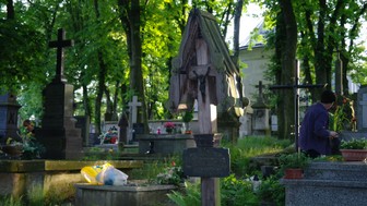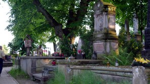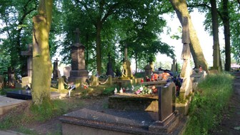 Nałęczowska nekropolia wśród kasztanowców i lip.