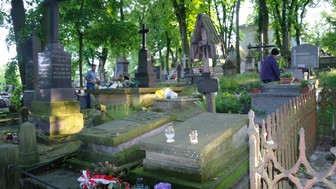 „Cmentarz ten był jak małe narodowe sanktuarium. Spomiędzy na jedną modłę odarnionych mogiłek, to zapadłych już środkiem ze starości, to nastroszonych śnieżna gliną ,wznosiły się gęsto kamienne grobowe pomniki, noszące na sobie nazwiska znane w kraju, nierzadko i za granicą, niektóre z nich rozsławione szeroko we świecie. Nazwiska a obok godności i stanowisk, i tytuły budzące w przechodniach mglistą zadumę nad klęskami i chwałą, zadumę zresztą krótkotrwałą i powierzchowną przy zwyczajowym westchnieniu, równie krótkim i powierzchownym ... w światłość wiekuista niechaj im świeci”.