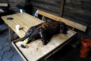 Ale często można spotkać i groźne zwierzęta takie jak dzik …. I często tak jak pokazują ostatnie zdjęcia, kończy się to źle dla ……….. dzika – ale żeby aż tak !!!?.