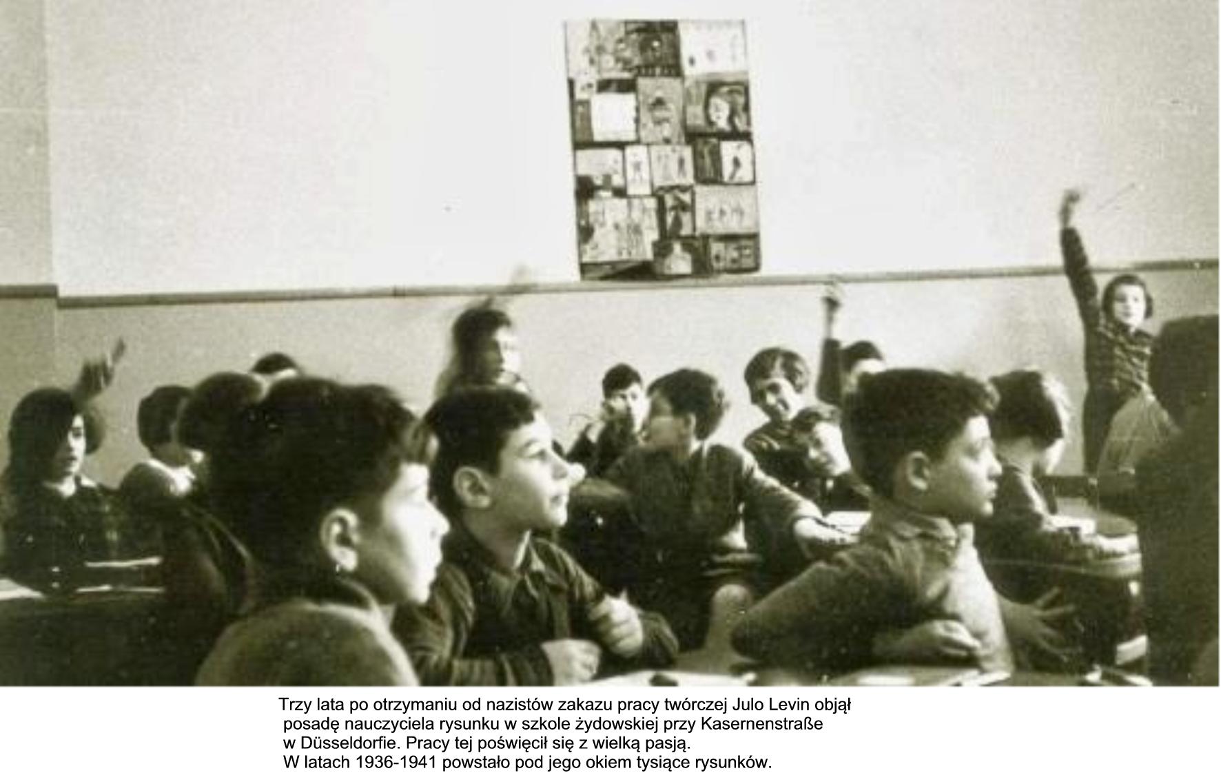 Julo Levin w 1935 roku pracował jako nauczyciel plastyki w prywatnej żydowskiej szkole w Düsseldorfie i zbierając istotne rysunki swych żydowskich studentów. Tę kolekcję Mieke Monjau, żona malarza Franza Monjau (1903/45; zamordowanego w obozie koncentracyjnym w Ohrdruf Buchenwald), w czasach hitlerowskiej gehenny ukryła i zachowała dla potomności. Kolekcja znajduje się w Stadtmuseum w Düsseldorfie a wystawy rysunków żydowskich dzieci o nazwie "ścigany, zamordowany" były eksponowane na całym świecie.
