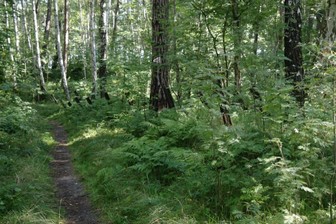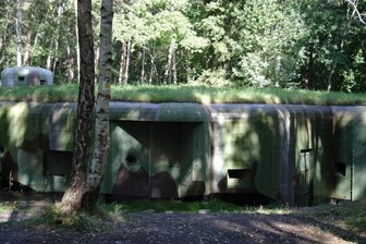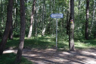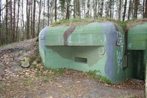 ..oznakowaną ścieżką poprzez las idziemy w kierunku parkingu mijając miejsca lub pozostałości po lekkich schronach bojowych