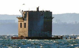 ..patrząc daleko na zatokę można zobaczyć dwa punkty obserwacyjne niemieckiego poligonu torpedowego :