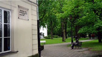 .... tablica pamiątkowa i ławeczka p. Prusa