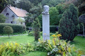 Pomnik Stefana Żeromskiego przed latarnią morska