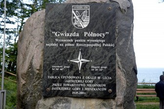 Porośnięty jest pięknym bukowym lasem, w którym nierzadko można spotkać okazy liczące grubo ponad 150 lat...Już w Jastrzębiej Górze kierowani tablicą informacyjną udajemy się na wysoki na prawie 35 metrów klif, na którym znajduje się obelisk nazywany "Gwiazdą Północy". To tu w 2000 roku, po dokładnych pomiarach geodezyjnych, określono z wielką precyzją najdalej wysunięty na północ koniec Polski.