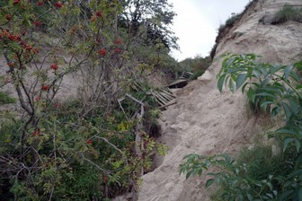 Według naukowców powstał on w wyniku erozyjnej działalności wód spływających z Wysoczyzny do Bałtyku. Brzeg wysokiego i stromego klifu nieustannie podmywany jest przez morskie fale.