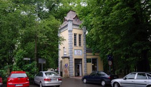 uzdrowiska, Bolesław Prus.Uliczką Lipową dochodzimy do głównej bramy Parku Zdrojowego ze względu na położenie we wschodniej części zespołu pałacowo-parkowego nazwaną Brama Wschodnią z dawną stróżówką z ( obecnie znajdującą się tam cukiernią). Brama wybudowana w stylu barokowo-klasycystycznym w latach 1767-79, a więc w tym samym czasie, co budowa rezydencji Małachowskich. Wieżyczka bramy zwana jest wieżą Aldony.