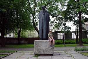 Wyjechaliśmy o godz.7: 00 w kierunku Słupska. Przed Słupskiem zrobiliśmy postój na leśnym parkingu. Zagotowałem wodę na dwa kubki spaghetti i na kawę. O godz. 13:00 przybyliśmy do Słupska. Samochód zaparkowaliśmy przed Sądem Okręgowym i poszliśmy zwiedzać miasto. Spacerkiem przez park Chopina przy Bulwarze ks. Jerzego Popiełuszki nad rzeką Słupią mijamy pomnik Fryderyka Chopina:
