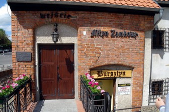 Do cenniejszych zabytków świątyni należy późnorenesansowa ambona, wykonana w latach 1609 - 1630 przez snycerza słupskiego Pawła Waltersdorfa, z fundacji cechu bursztynników (w 1643 r. cech ten liczył 43 członków). Ambona pokryta jest płaskorzeźbami, bogato ornamentowana, polichromowana i złocona. Wejście na ambonę ujęte portalem (w drzwiach zamek z 1609 r.). Wspaniałe, pierwotne zwieńczenie ambony, tzw. bursztynowa korona z pierwszej połowy XVII w, zostało wywiezione w czasie II wojny światowej. Zwracamy również uwagę na piękne wieloramienne świeczniki wiszące, barokowe z XVIII w. i neorokokowe z XIX w. oraz liczne lichtarze barokowe XVII- XVIII w. i późniejsze z XIX w. jedno i wieloramienne.Z Kościoła NMP. Udaliśmy się w kierunku Zamku Książąt Pomorskich. Na dziedzińcu wita nas ładny pomnik Bogusława X Wielkiego (1454-1523), Księcia Pomorza, Kaszubów i Wenedów. Na tablicach są napisy „ 21 maja 1497 r. Bogusław X z drużyną Pomorzan wypływa z Wenecji do Ziemi Świętej by walczyć w obronie Grobu Pańskiego” oraz „Rok 1515 Bogusław X nadaje rodom: Jutrzenka, Zmuda, Malotka, Reszka, Panek oraz Chamier wieś Trzebiatkowa k/Bytowa .Wchodzimy do muzeum.