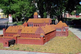 Wyjeżdżając rano, przybywamy pod zamek w Malborku i mamy godzinę czasu przed otwarciem muzeum zamkowego a więc spacerujemy po podzamczu. Przy Placu Miejskim, niedaleko murów, napotykamy „ zamek pod zamkiem”. Jest to miniatura Zamku w Malborku wykonana w skali 1: 30 i można zobaczyć zamek w całej okazałości. Wieża zamkowa ma 2 metry wysokości. Wspaniale odwzorowane podzamcze, Zamek Niski, Średni i Wysoki. Taki widok pokazuje wielkość i kunszt budowy największej ceglanej warowni średniowiecznej. Na zbudowanie miniatury Zamku użyto ok. miliona miniaturowych, specjalnie wypalanych cegiełek a miniaturę zamku zbudowano na powierzchni 50 m2.